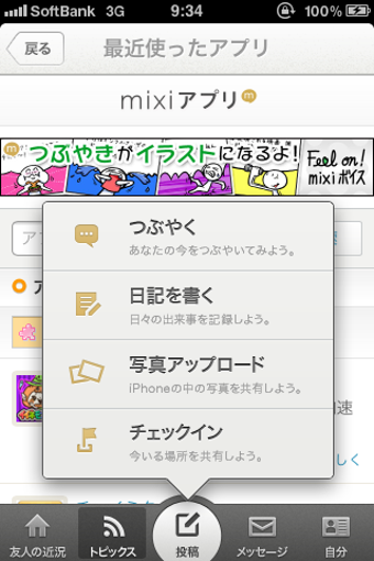 mixiでは、友だちのつぶやきに対して「イイネ!」や「コメント」を活用できるのですが、表示されているボタンが小さいので、「イイネ!」をタップしたかったのに間違って「コメント」を押してしまうことがあり、気をつけてタップしましょう。また、SNSの機能だけでなく顔を見ながら話したいという人には、最大10人とビデオチャットができるGoogle+をオススメします。